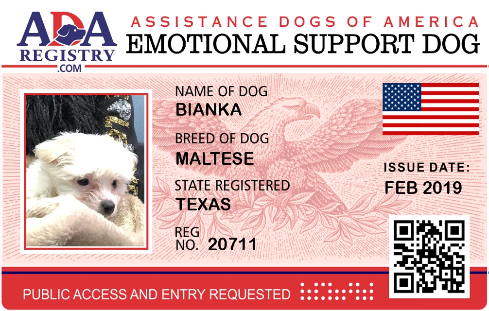 Emotional Support Dog Registration for Bianka