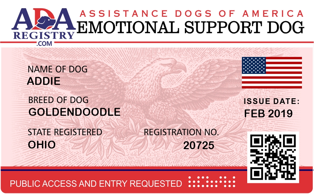 Emotional Support Dog Registration for Addie