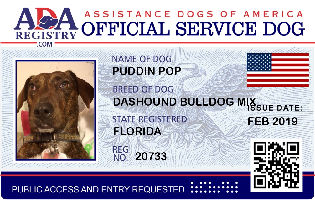 Emotional Support Dog Registration for Puddin Pop