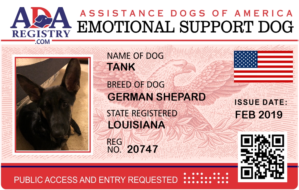 Emotional Support Dog Registration for Tank