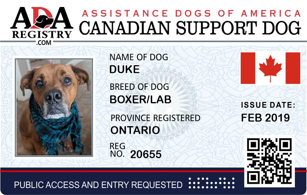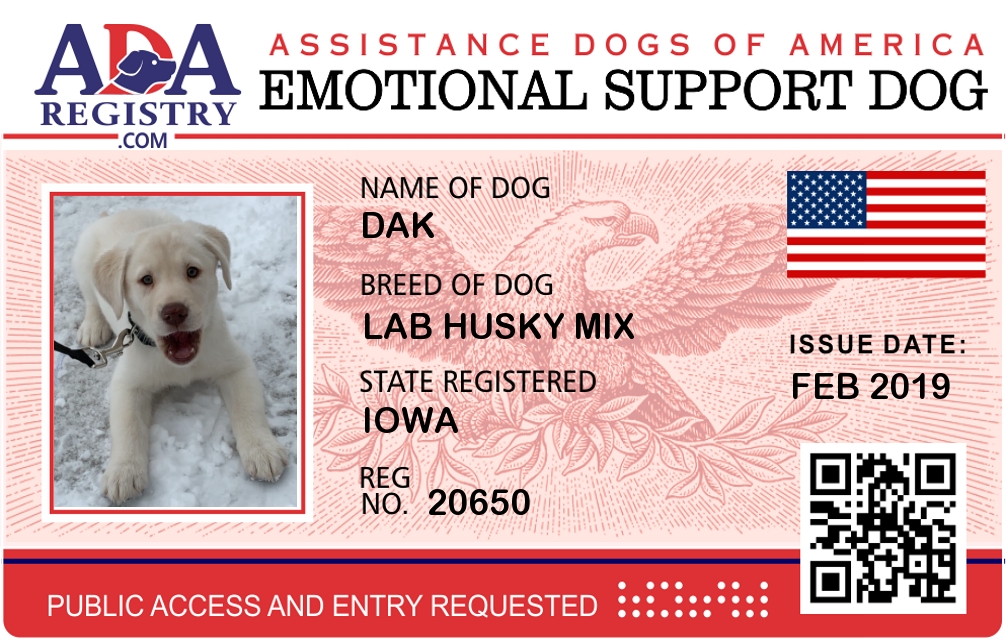 Emotional Support Dog Registration for DUKE