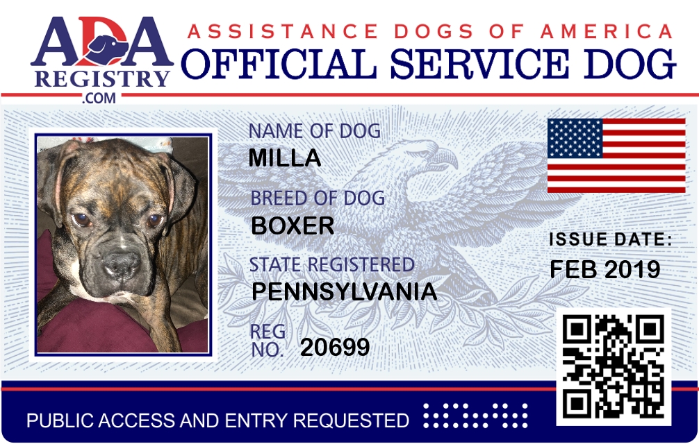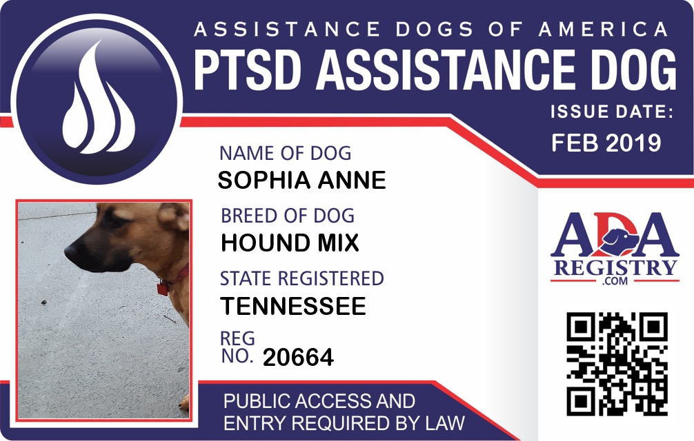 PTSD Assistance Dog Registration for Sophia anne