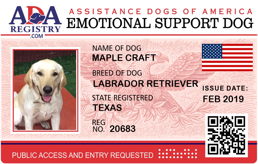 Emotional Support Dog Registration for Maple Craft