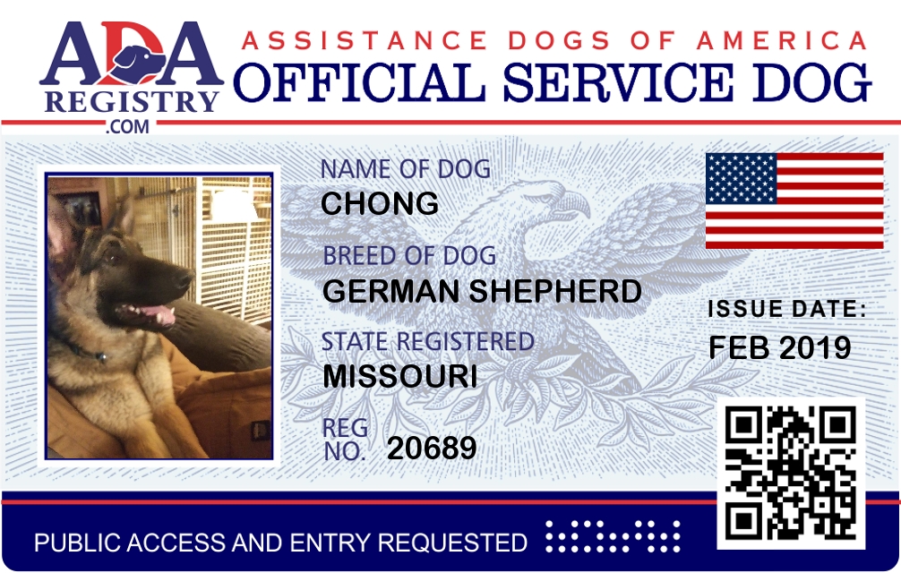 Service Dog Registration for Chong