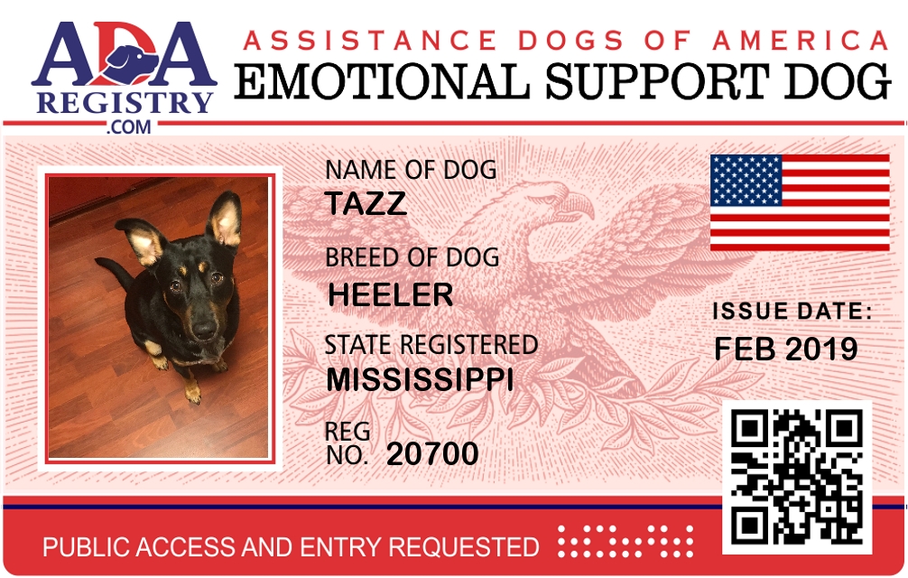 Emotional Support Dog Registration for Tazz
