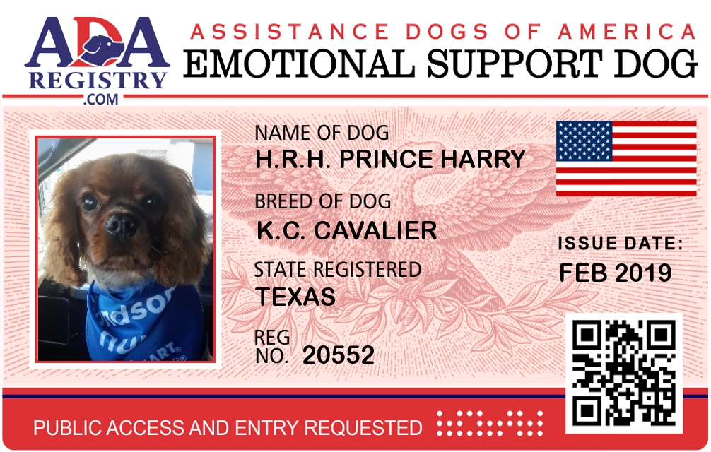 Emotional Support Dog Registration for H.R.H. Prince Harry