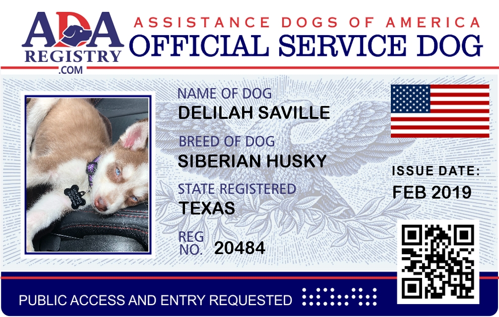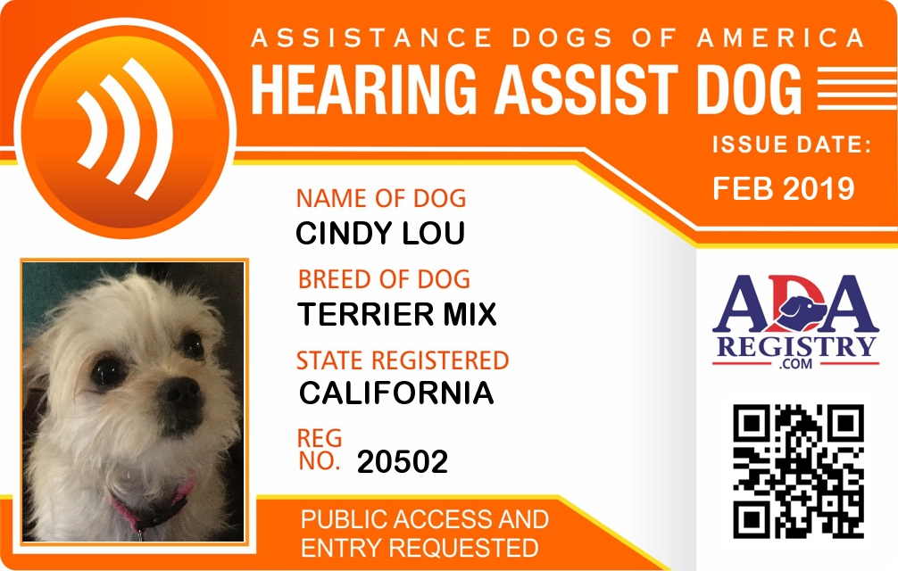 Service Dog Registration for Cindy Lou