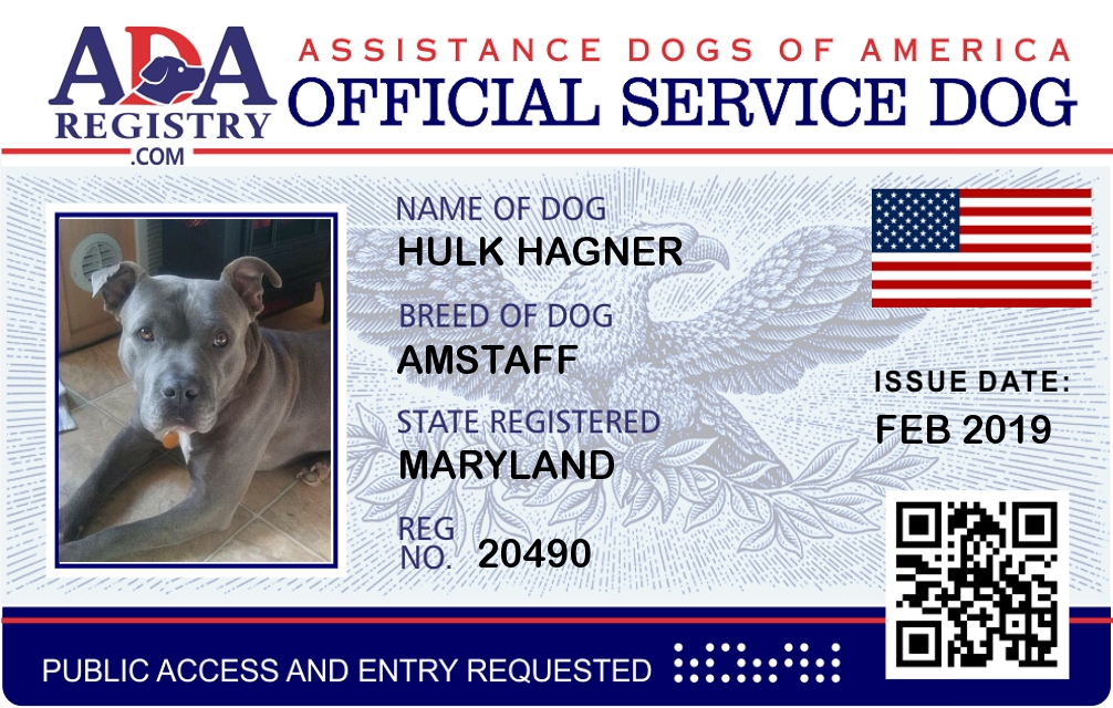Service Dog Registration for Hulk Hagner