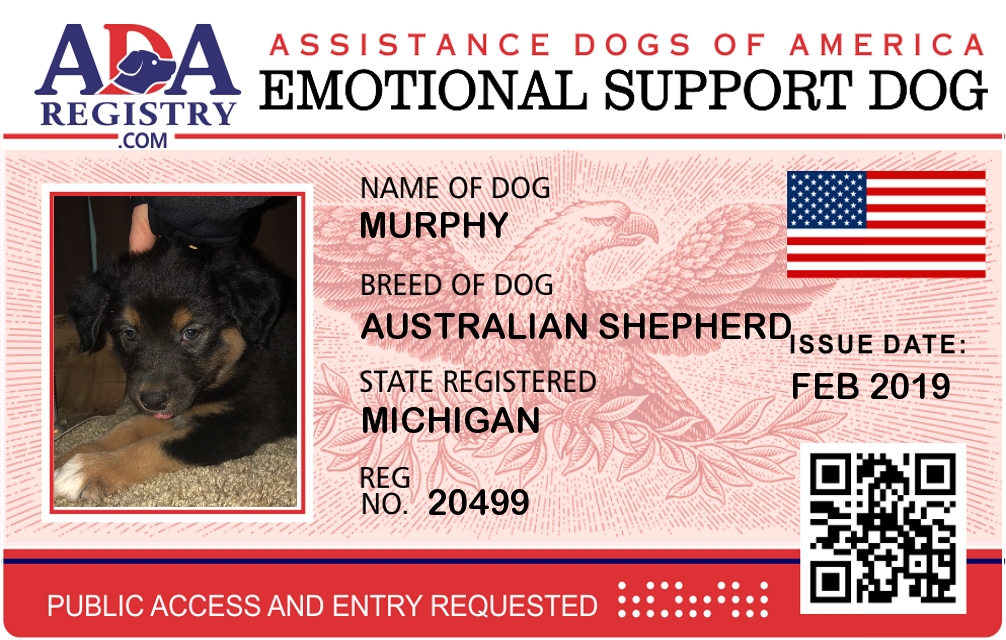 Emotional Support Dog Registration for Murphy