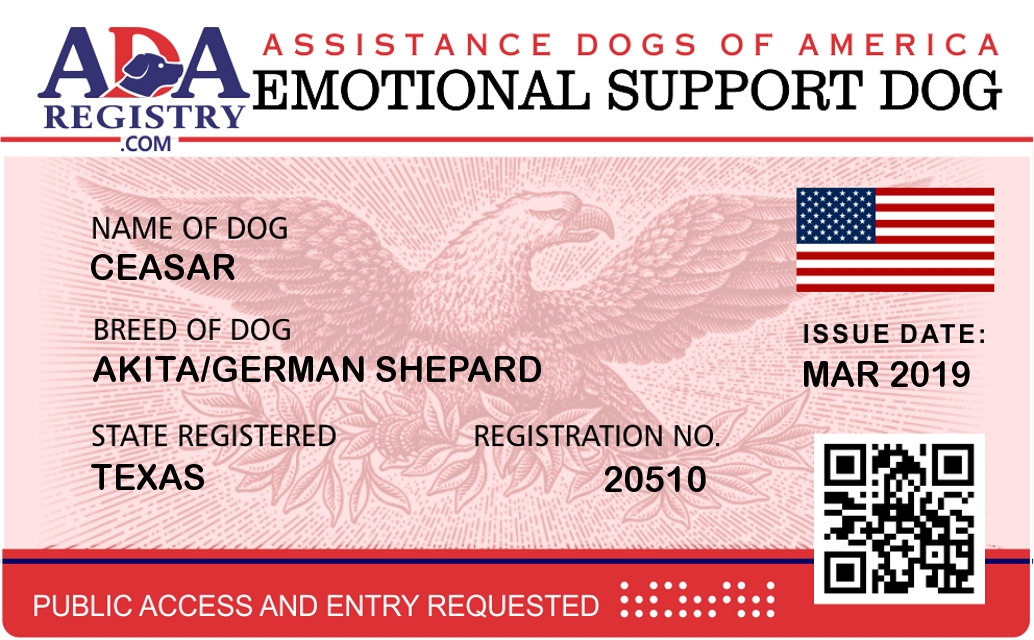 Emotional Support Dog Registration for Lexi LuLu Northcutt