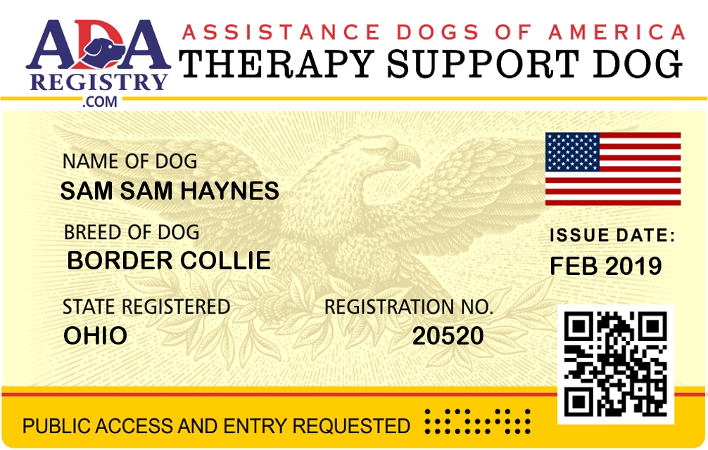 Therapy Dog Registration for Sam Sam Haynes