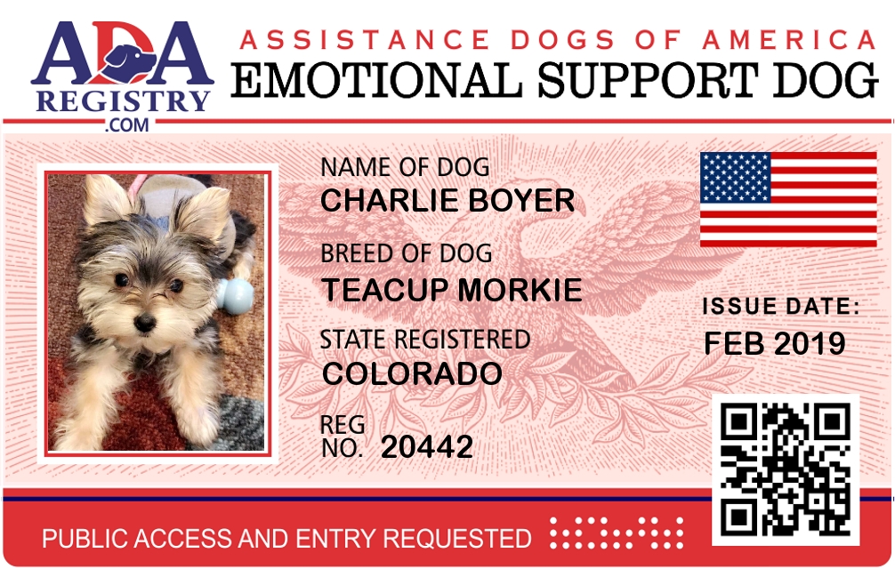 Emotional Support Dog Registration for Charlie Boyer