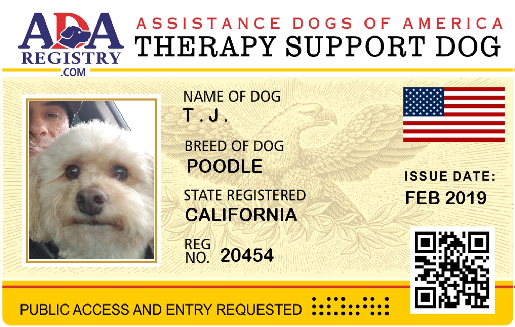Therapy Dog Registration for T . J .