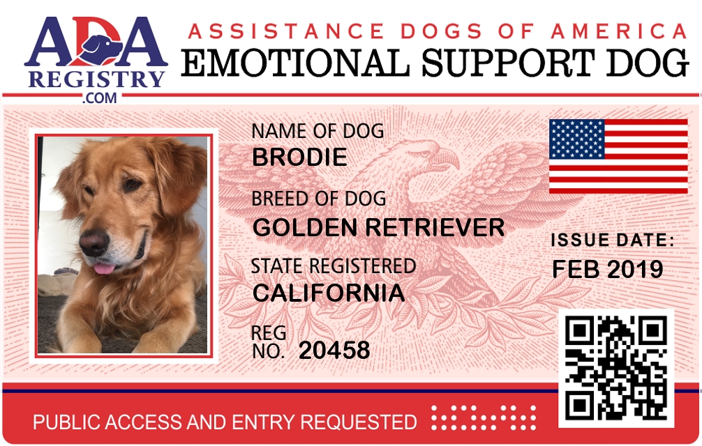 Emotional Support Dog Registration for Brodie