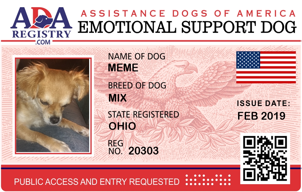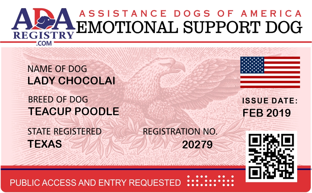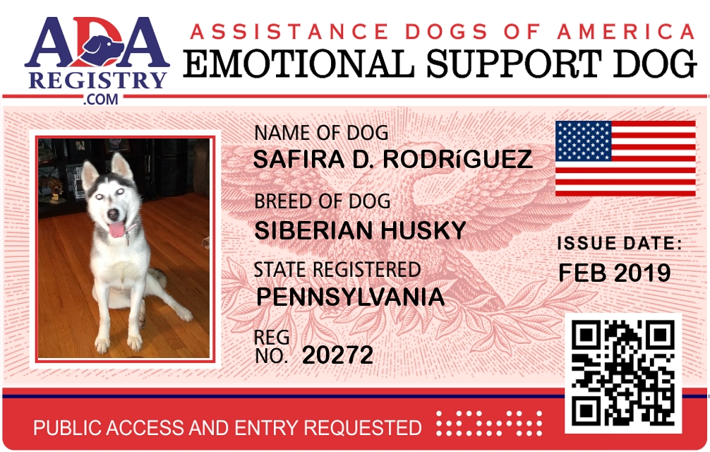 Emotional Support Dog Registration for Safira D. Rodríguez