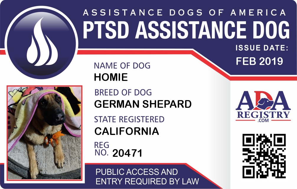 PTSD Assistance Dog Registration for Homie