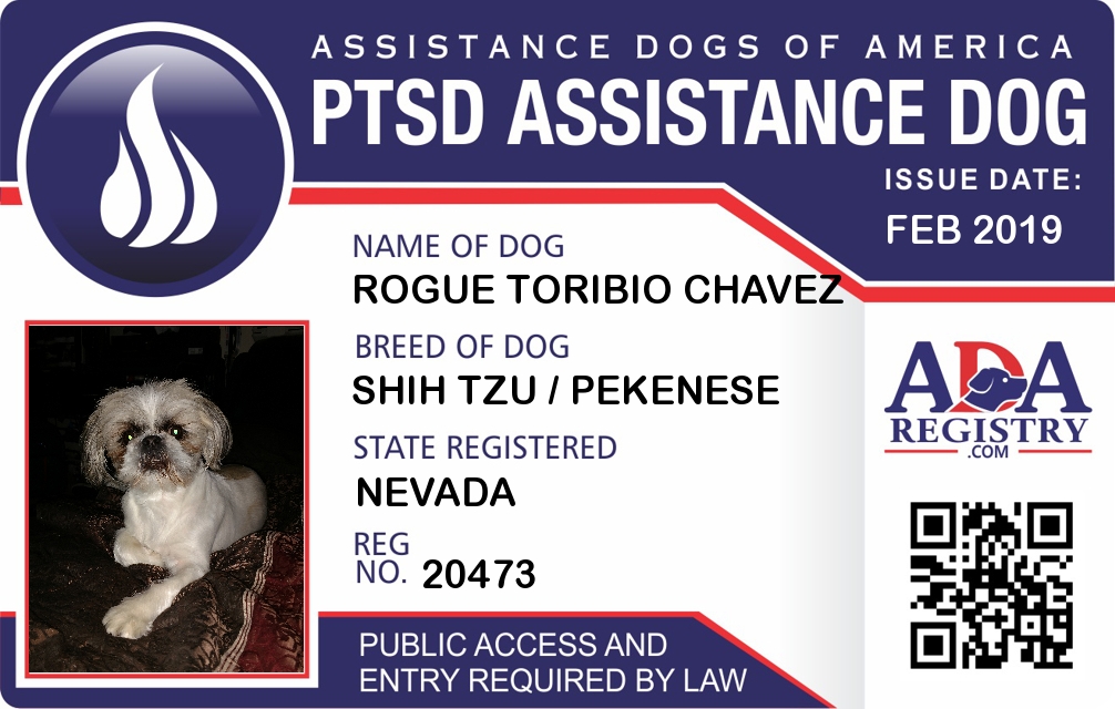 PTSD Assistance Dog Registration for Rogue Toribio Chavez