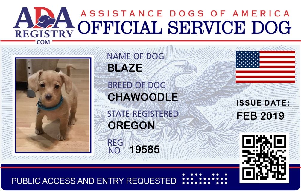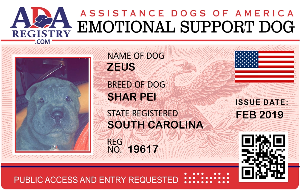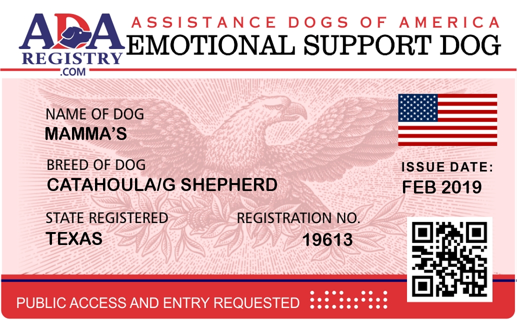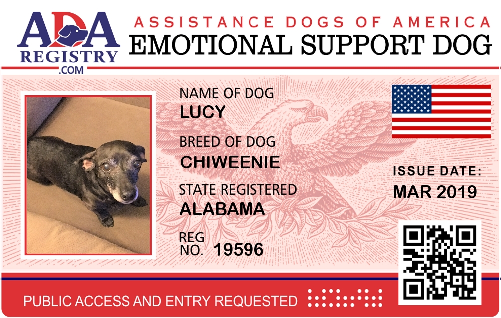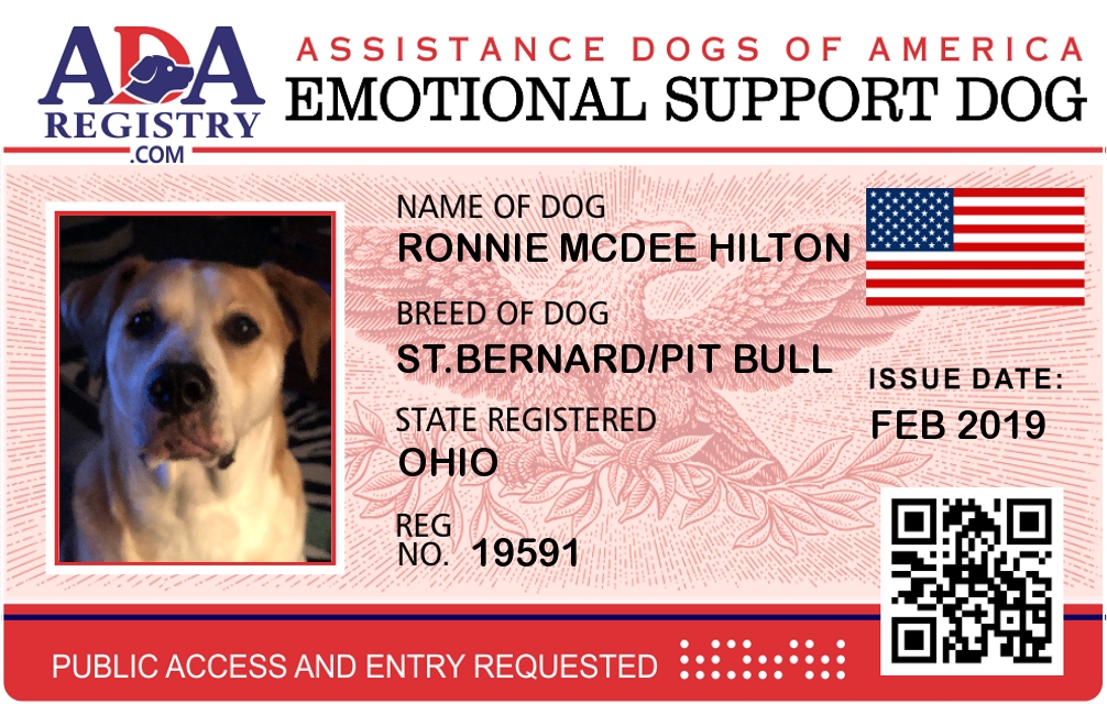 Emotional Support Dog Registration for Ronnie McDee Hilton