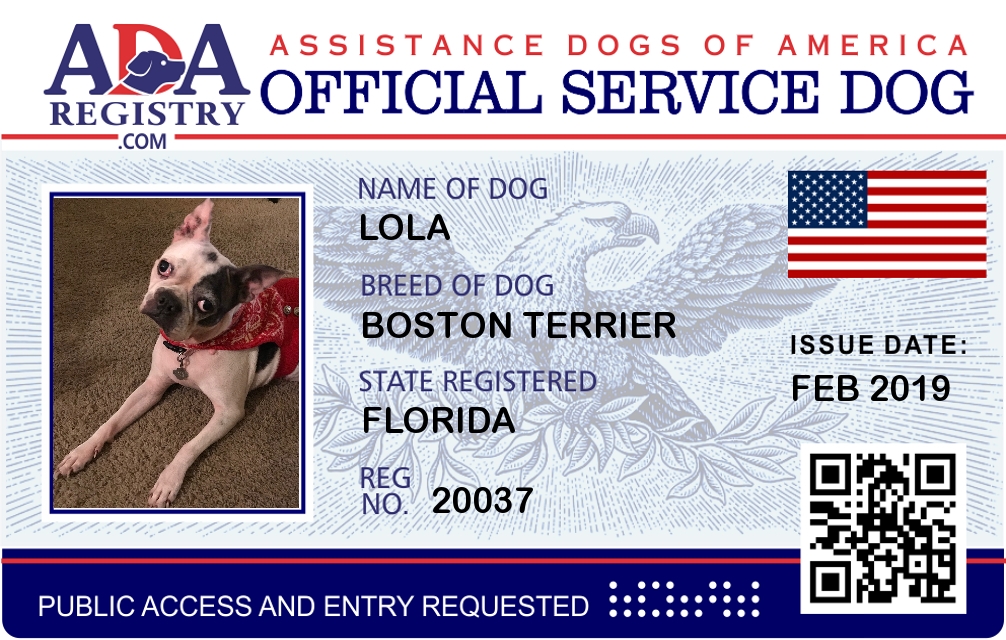 Psychiatric Service Dog Registration for Rusty Jeznach