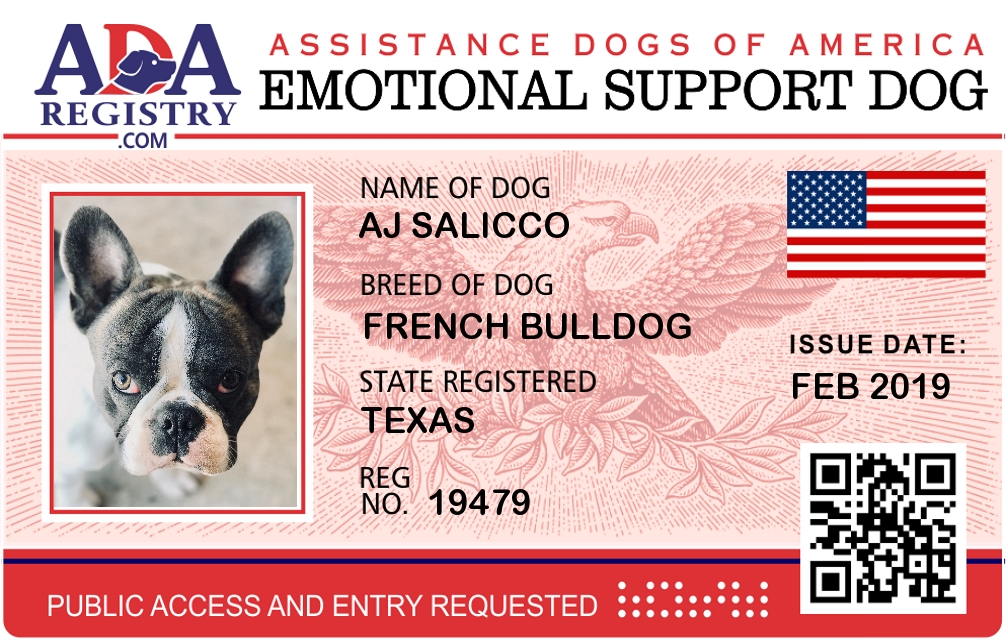 Emotional Support Dog Registration for AJ Salicco