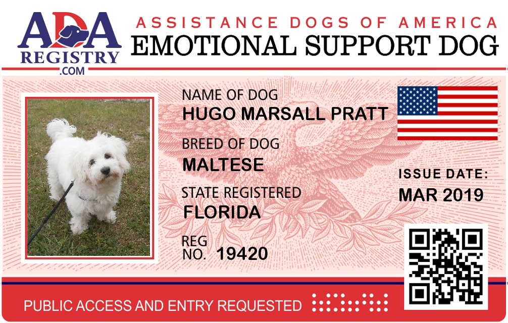 Emotional Support Dog Registration for Hugo Marsall Pratt