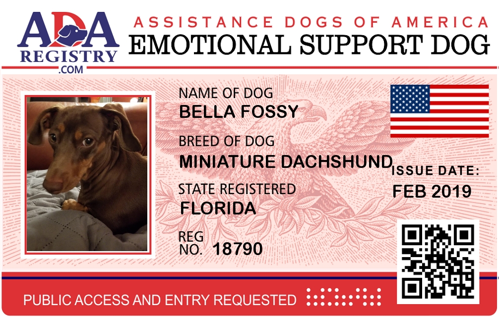 Emotional Support Dog Registration for Bella Fossy