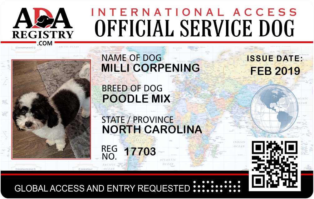 PTSD Assistance Dog Registration for Milli Corpening