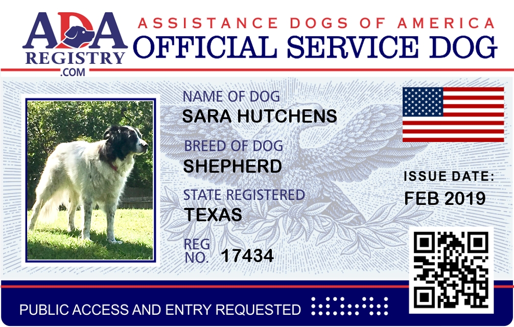 Service Dog Registration for Sara Hutchens