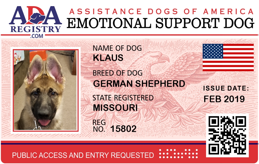Emotional Support Dog Registration for Klaus