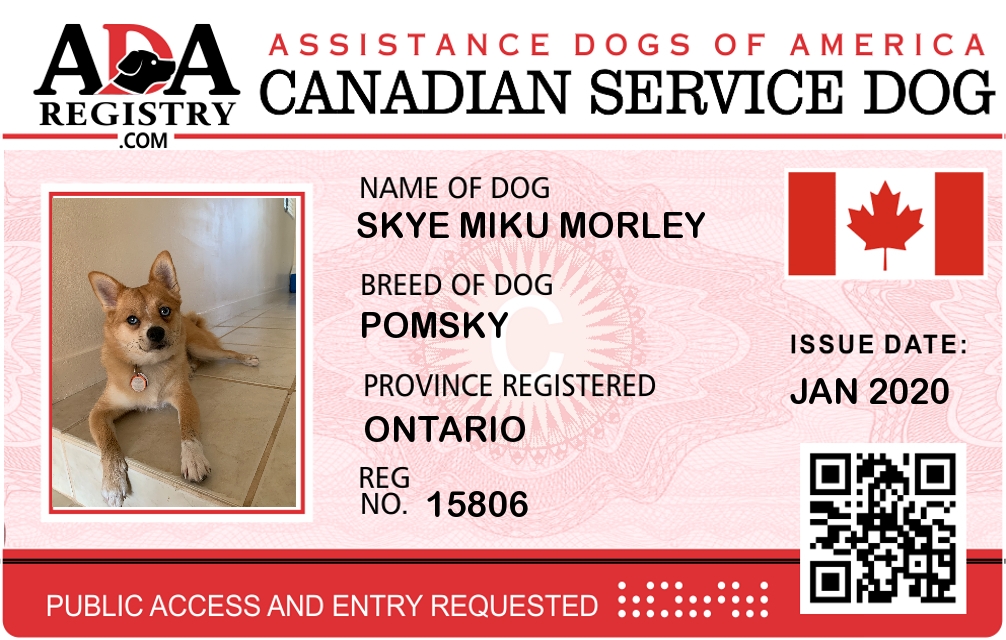 Service Dog Registration for Skye Miku Morley