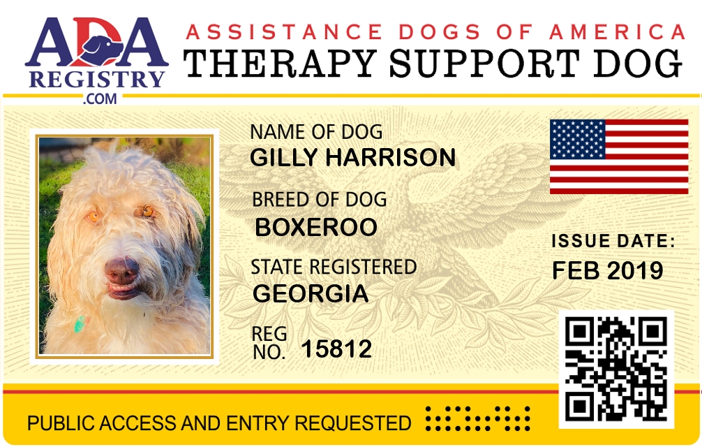 Therapy Dog Registration for GiLLY Harrison