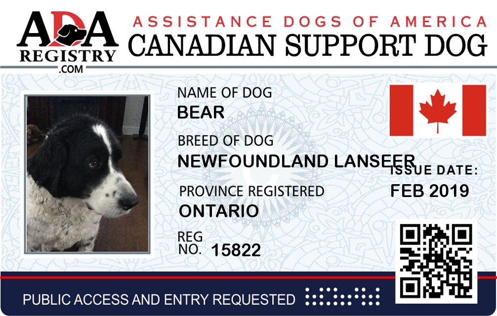 Emotional Support Dog Registration for Bear