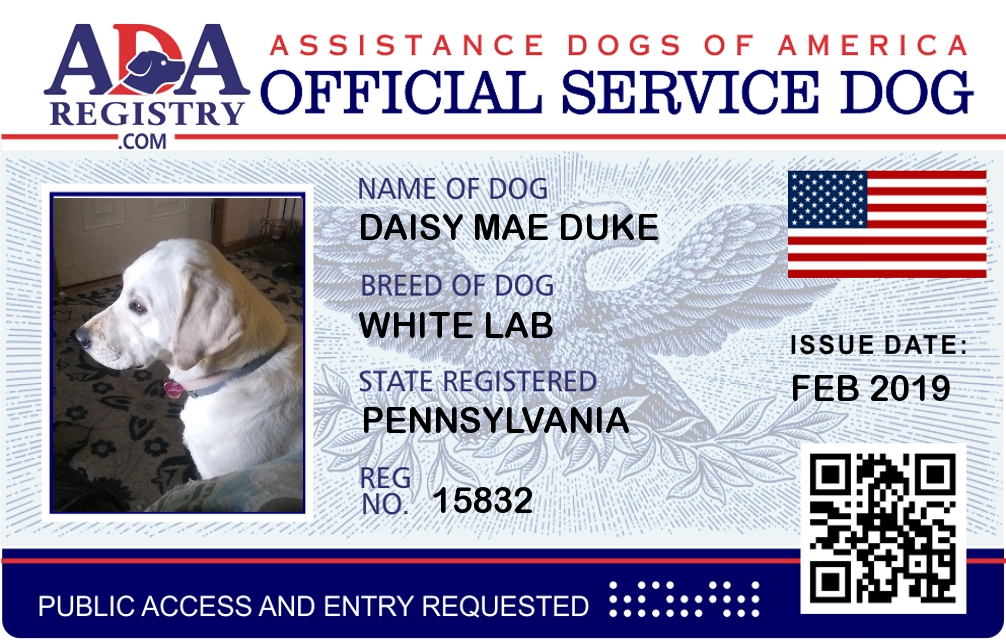 Service Dog Registration for Daisy Mae Duke