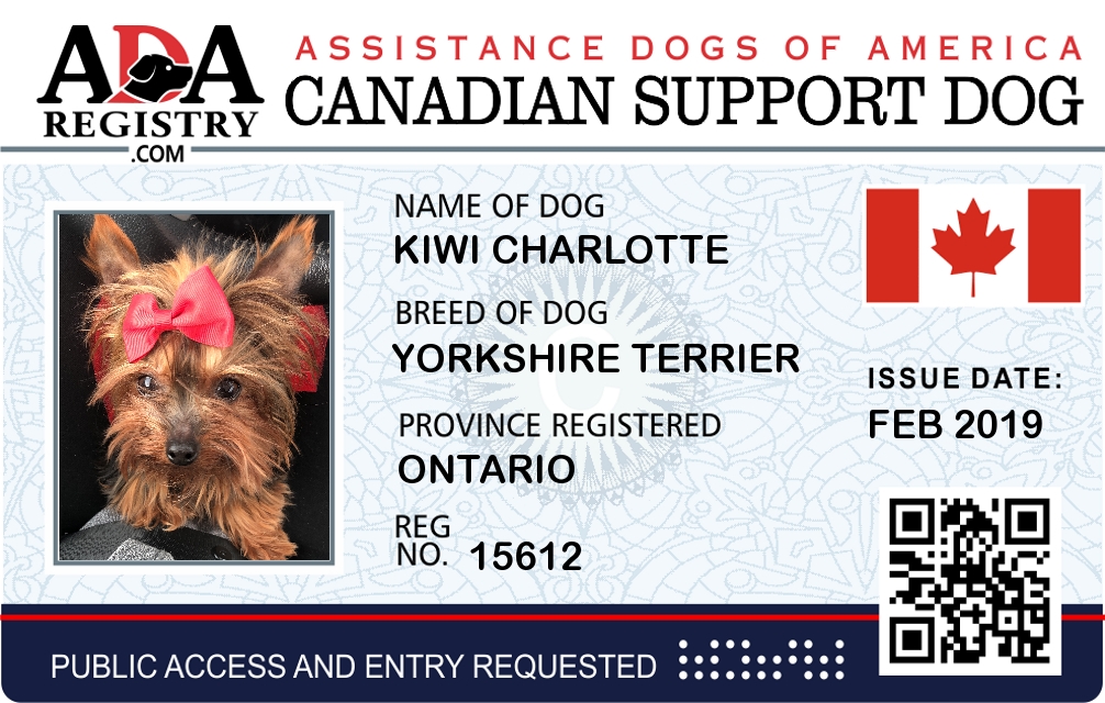 Emotional Support Dog Registration for Kiwi Charlotte