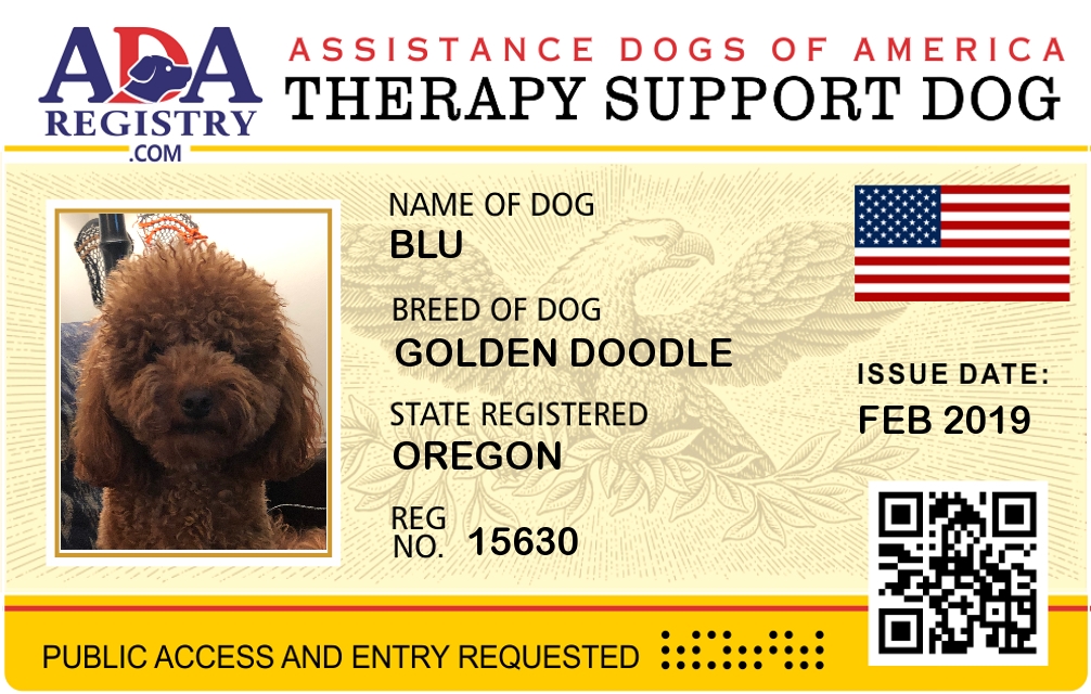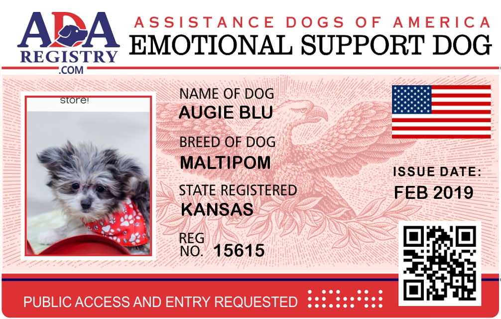 Emotional Support Dog Registration for Augie Blu