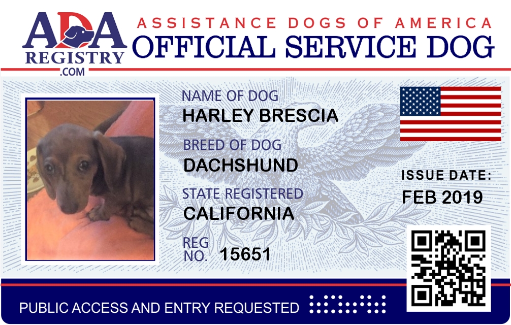 Service Dog Registration for Harley Brescia