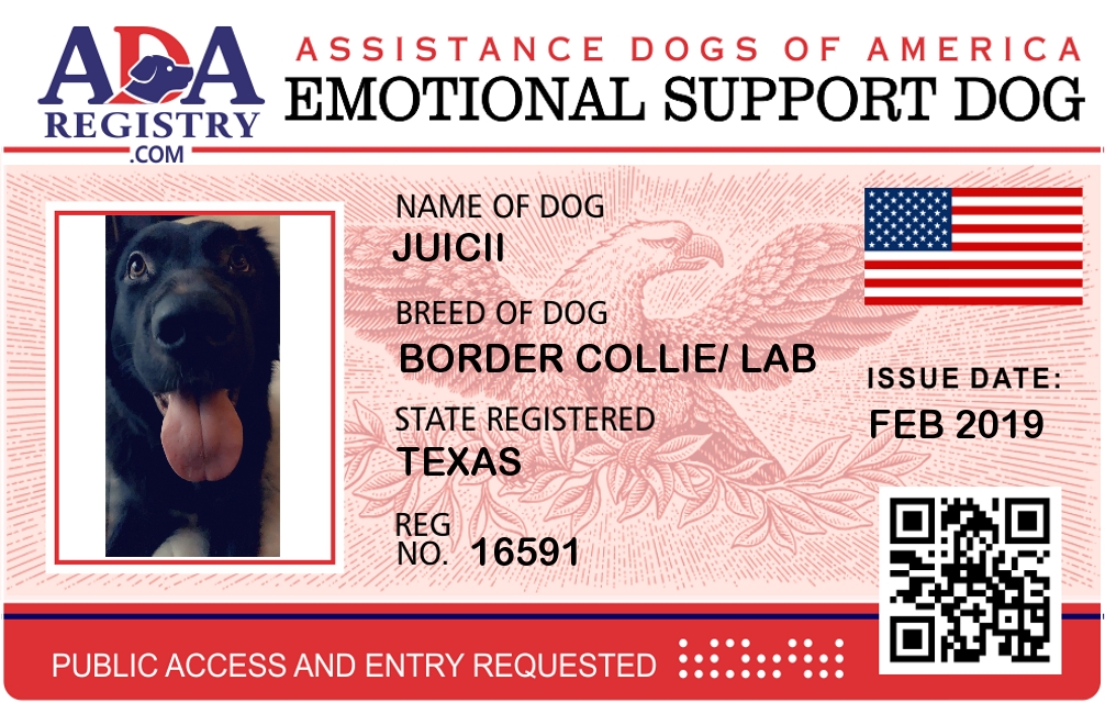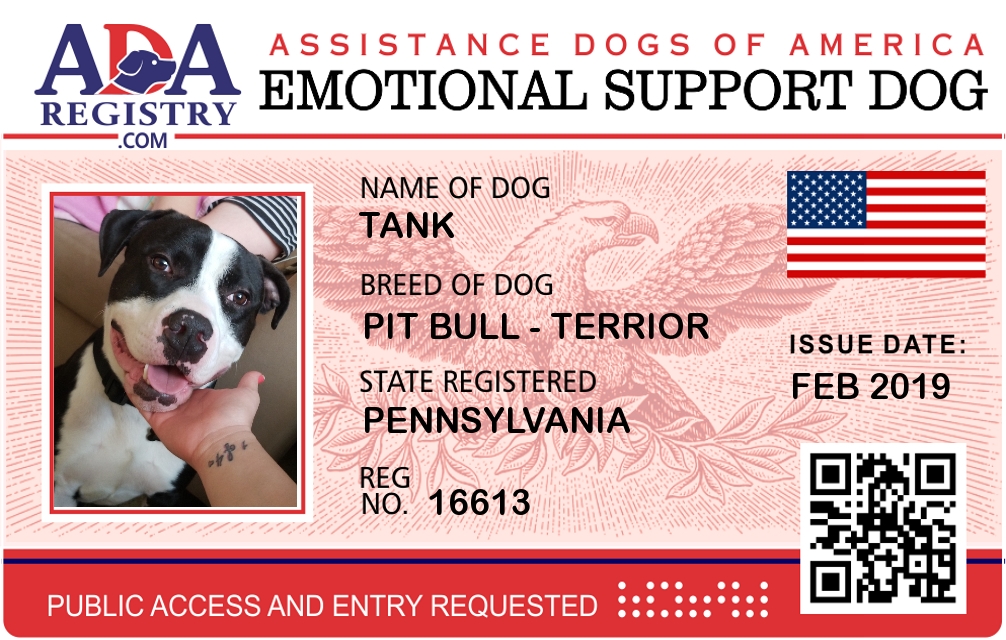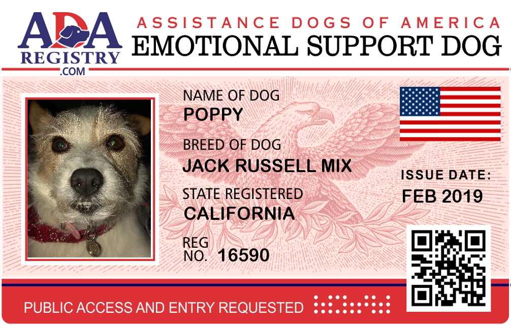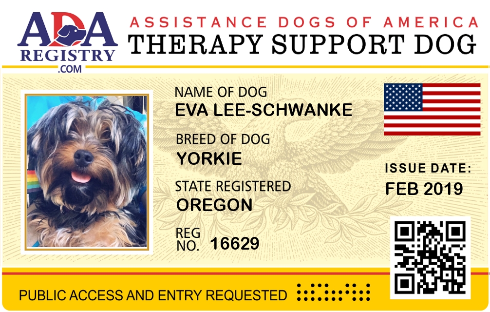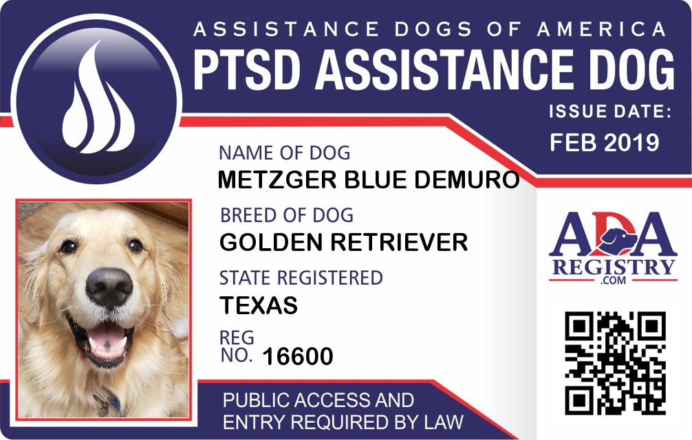 Emotional Support Dog Registration for Metzger Blue DeMuro