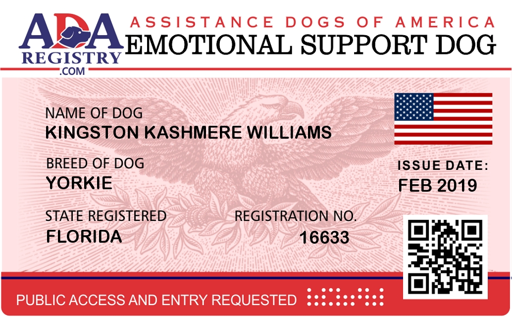 Emotional Support Dog Registration for Kingston Kashmere Williams