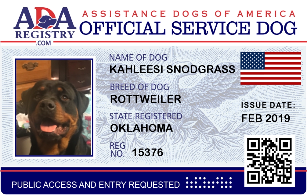 Diabetic Alert Dog Registration for Kahleesi Snodgrass