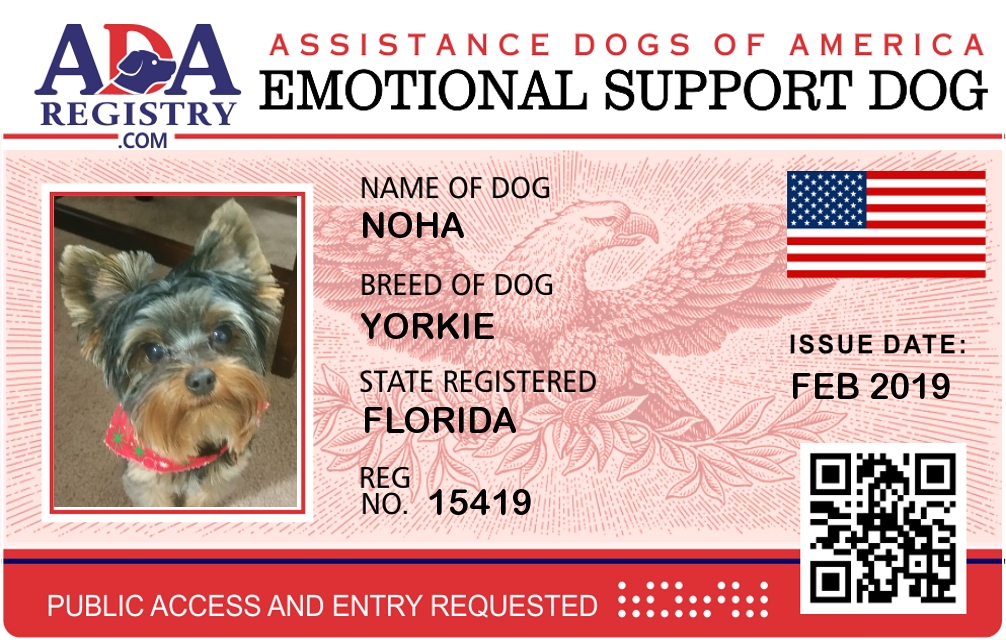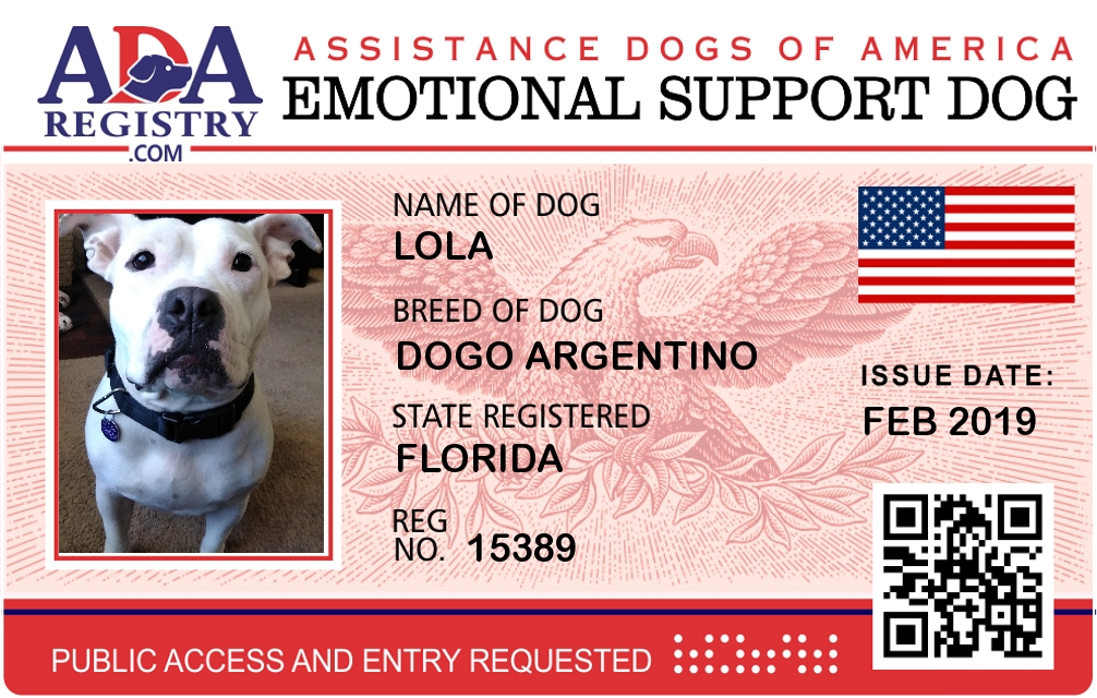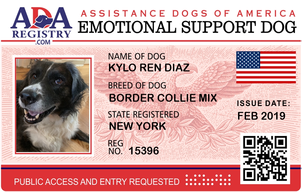 Emotional Support Dog Registration for Kylo Ren Diaz