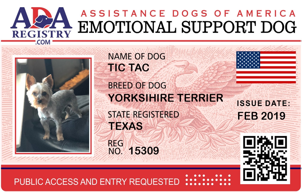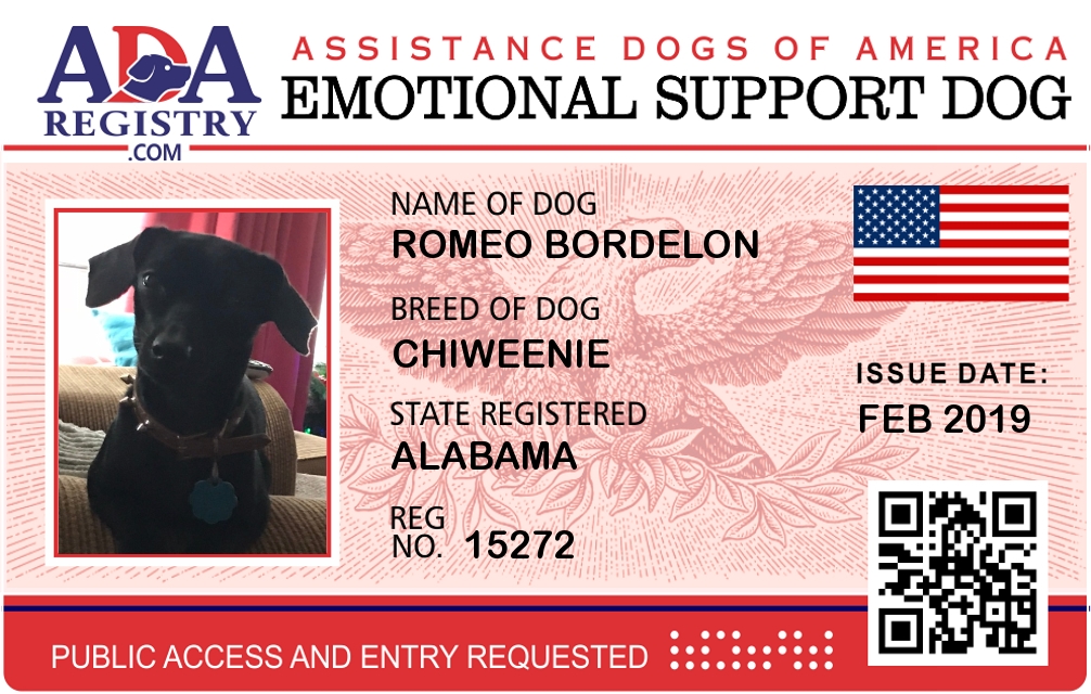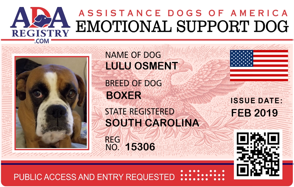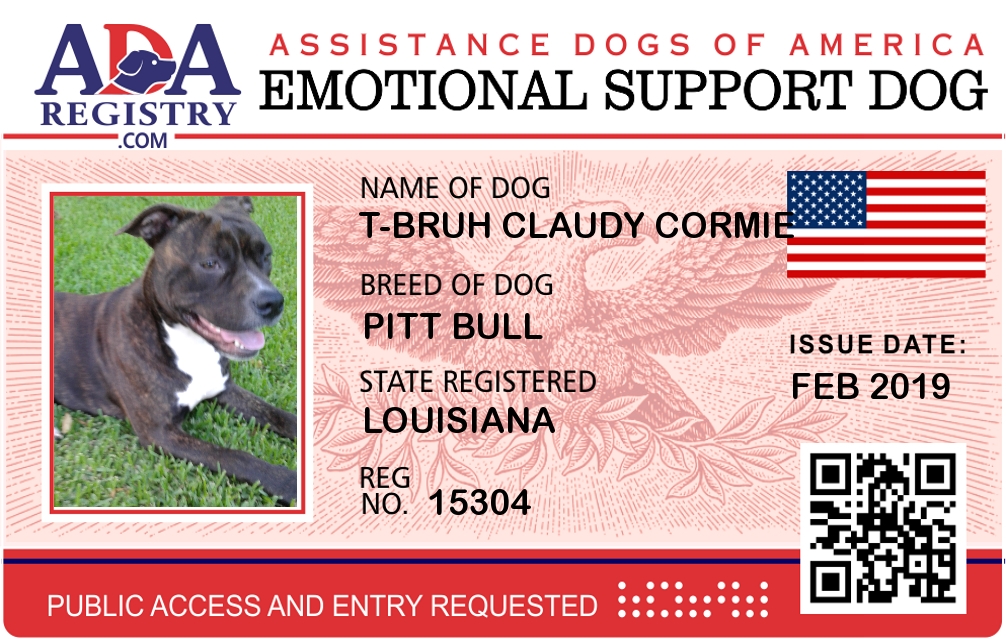 Emotional Support Dog Registration for T-bruh Claudy Cormie