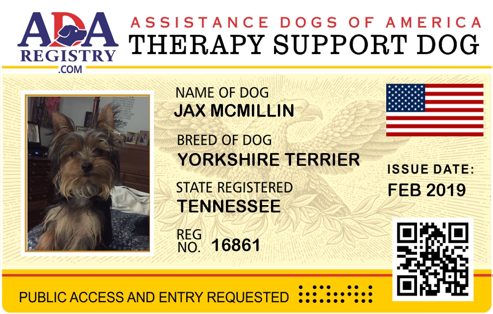 Therapy Dog Registration for Jax McMillin