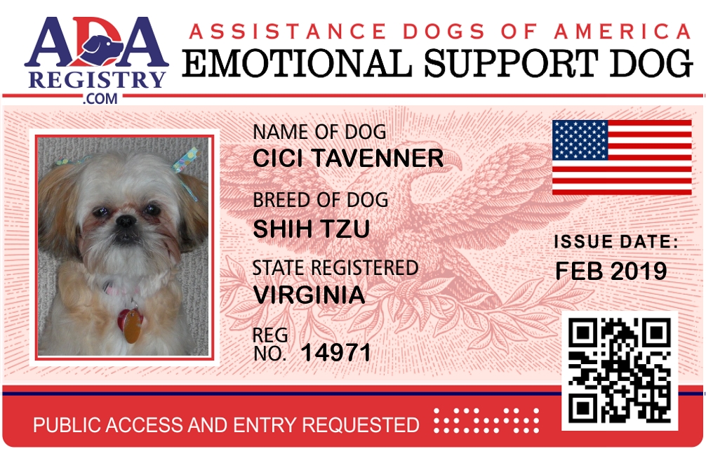 Emotional Support Dog Registration for Cici Tavenner