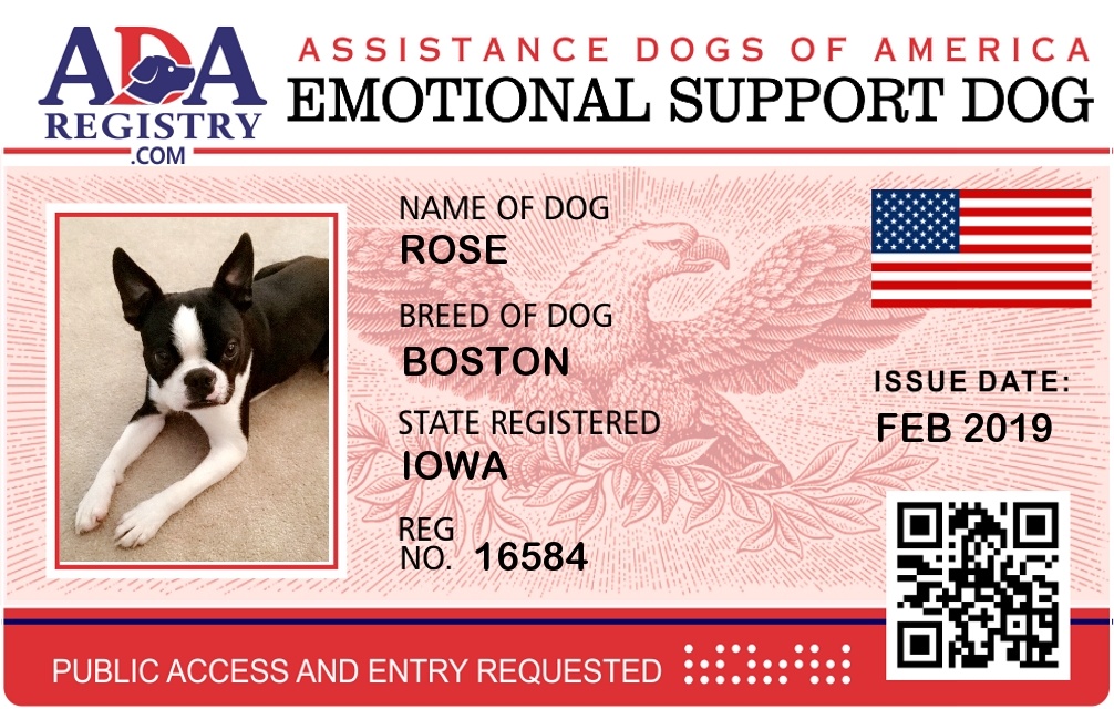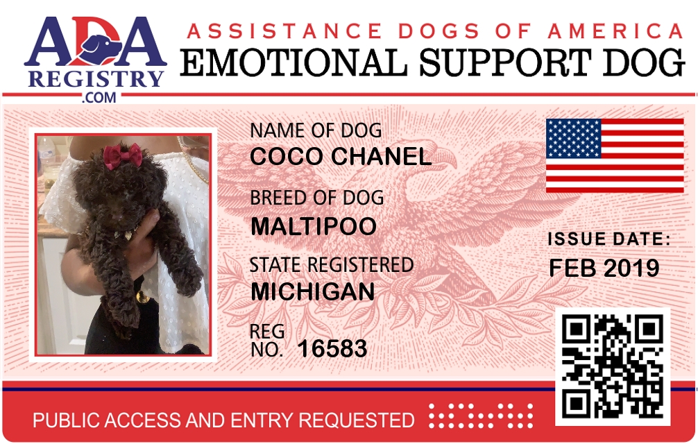 Emotional Support Dog Registration for Metzger Blue DeMuro