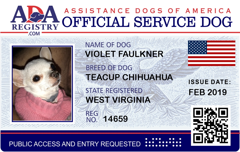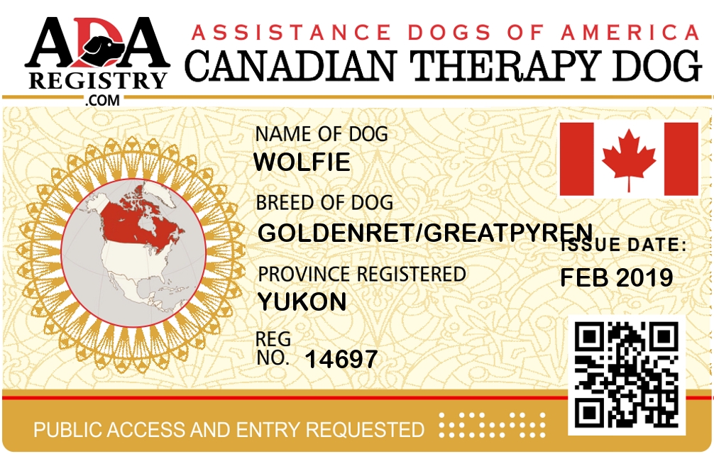 Therapy Dog Registration for Wolfie REVOKED FOR FRAUD