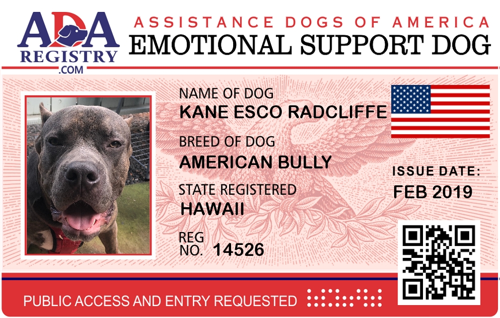 Emotional Support Dog Registration for Kane Esco Radcliffe
