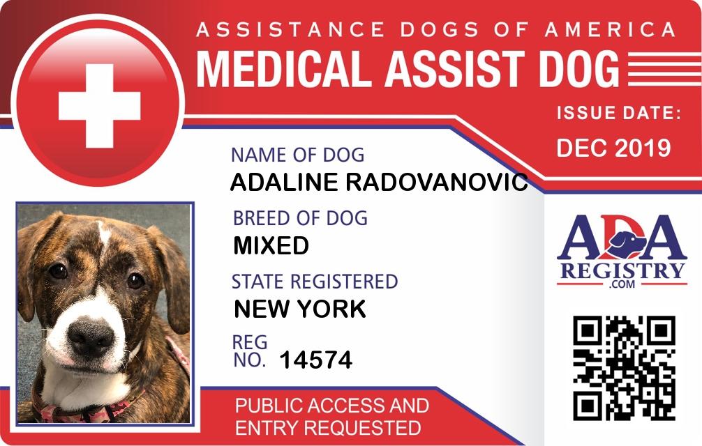 Medical Assistance Dog Registration for Adaline Radovanovic
