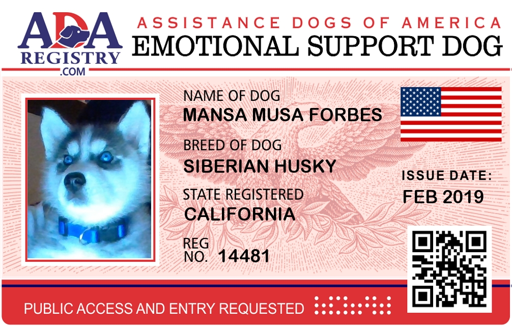 Emotional Support Dog Registration for MANSA MUSA FORBES