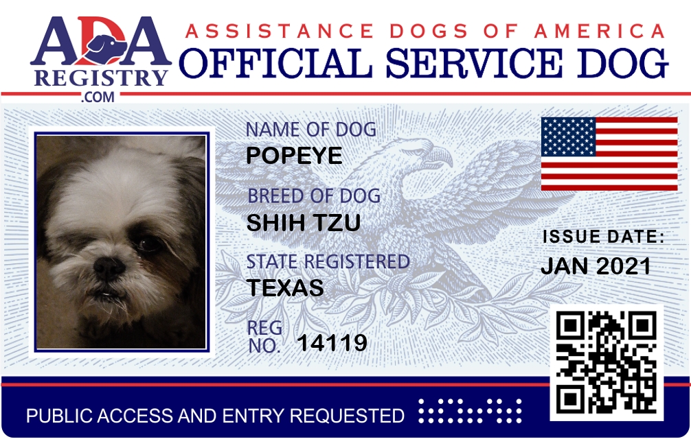 Service Dog Registration for Popeye