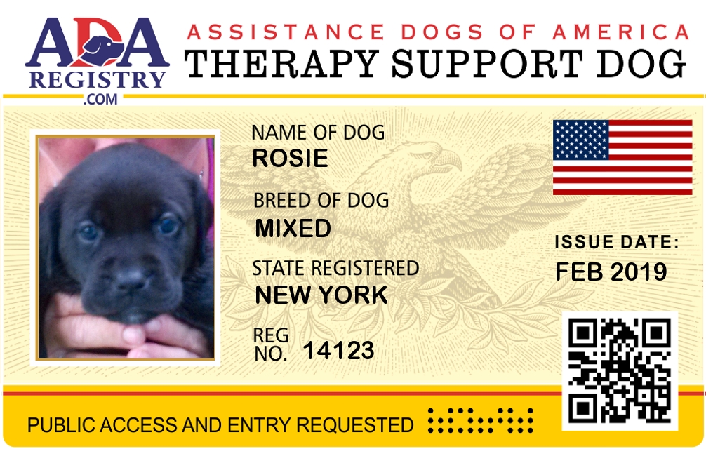 Therapy Dog Registration for ROSIE